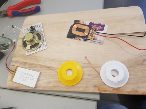 The original project linked above builds a simple little toy-monster that gives out snarky remarks when left alone for too long as well as playing a sound when its belly is pressed (tickled). My version follows this behaviour and the most noteworthy addition was the contactless charging. This eliminated the need for any external sockets or cables.